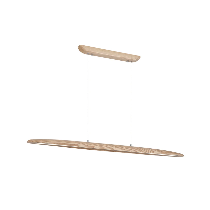 LED-Pendellampe Kenzie, Länge 60 cm, hellbraun, Holz, CCT