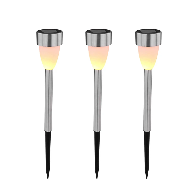 Dieses 3-er Set Edelstahl-Solarleuchten mit satinierten weißen Kunstoffschirmen lässt sich praktisch und einfach in jedem Garten oder Vorgarten verteilen. Flackernde Leds sorgen für eine romantische Atmosphäre. Jederzeit können die Solarleuchten mit ihrem praktischen Erdspitz umplatzieren.
