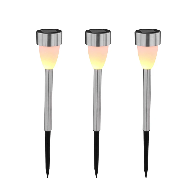 LED-Solar-Erdspießleuchte 33576-3, Edelstahl, 3er-Set