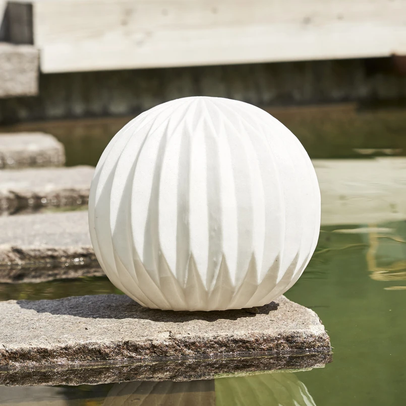 Die weiße LED-Außenleuchte Sandy ist nahezu in Kugelform mit gewellter Oberfläche gestaltet. Als Material kommt Polystone zum Einsatz, das aus einer Mischung von Sand und Kunstharz gewonnen wird. Sandy kann als Dekoleuchte auf der Terrasse und dem Balkon sowie im Garten zum Einsatz kommen. Der Betrieb erfolgt mit drei AAA-Batterien (exklusive). Die Timerfunktion (6 h ein, 18 h aus) ermöglicht eine automatische Schaltung.