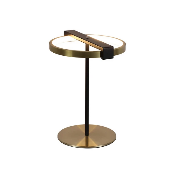 Die LED-Tischleuchte Aerial in der Farbkombination Messing satiniert und Schwarz ist ein moderner Lichtspender für viele Bereiche. Abgestimmt auf die Pendelleuchte oder die Stehleuchte vervollständigt diese atemberaubende Tischleuchte die Kollektion Aeria. Das Licht der im Ring verbauten LEDs wird durch die Abdeckung aus Silikon nach unten abgestrahlt und lässt sich über den Schalter am Leuchtenkopf in drei Helligkeitsstufen schalten.