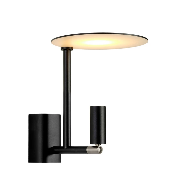 Mit ihrer klaren, reduzierten Gestaltung verkörpert die LED-Wandlampe Kelly des spanischen Industriedesigners Jordi Veciana einen modernen Minimalismus. An der zur Front abgerundeten Wandbefestigung setzt ein horizontaler Ausleger an, an dessen Ende ein kleiner zylindrischer Spot befestigt ist. Dank dessen Dreh- und Schwenkbarkeit lässt sich das warmweiße, mittelbreit (50°) ausgestrahlte Licht der integrierten LED perfekt zur Lesebeleuchtung ausrichten. Zudem ist an einem vertikalen Arm eine Reflektorplatte angebracht, die das Licht bei entsprechender Beleuchtung nach unten reflektiert und so eine indirekte Beleuchtung gewährt.