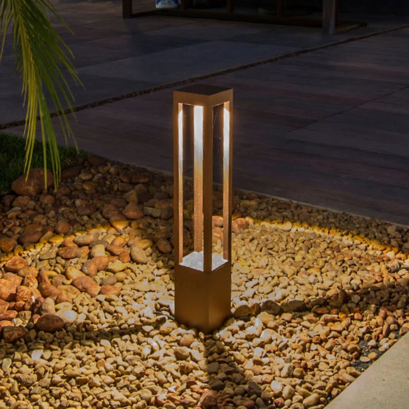 LED-Wegeleuchte Agra, rostbraun, Aluminium/Glas, Höhe 65 cm