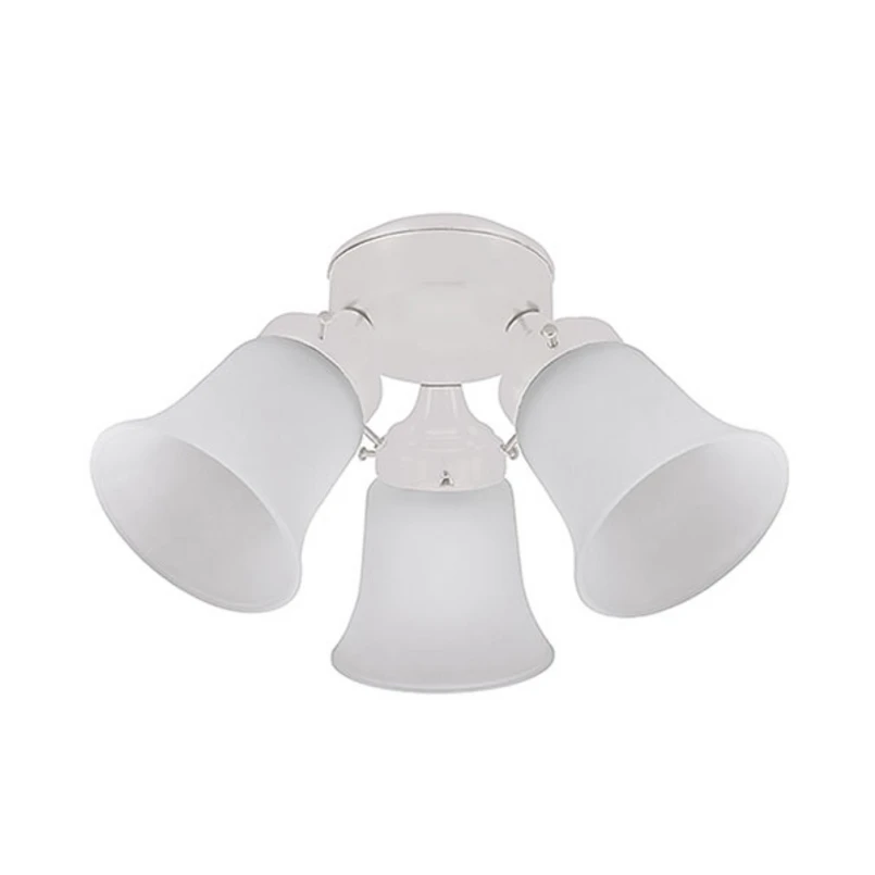 Die dreiflammige Anbauleuchte besitzt drei tulpenförmige Glasschirme. Sie kann nachträglich an die passenden Deckenventilatoren angebaut werden. Gesteuert werden kann sie per Zugschalter am Ventilator, mit einer Wandschaltung oder Fernbedienung.