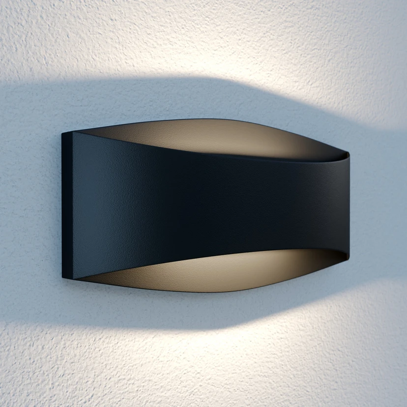 Das formschöne Design der schwarzen und schlichten Außenwandleuchte Evric ist ausgestattet mit energieeffizienten und warmweiß strahlenden LEDs. Diese geben ihr Licht sanft nach oben und auch nach unten ab und sorgen so für ein angenehmes Lichtbild an der Häuserfassade. Evric dient perfekt als kleines Orientierungslicht in der Dunkelheit. Die LEDs werden durch eine Platte aus Klarglas zusätzlich vor Wettereinflüssen geschützt, sodass dem Einsatz im Außenbereich für die kleine Leuchte Evric nichts im Wege steht.