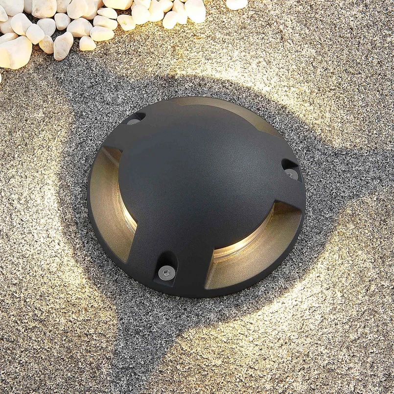 Dreiflammige LED-Bodenaufbauleuchte Huban, überfahrbar