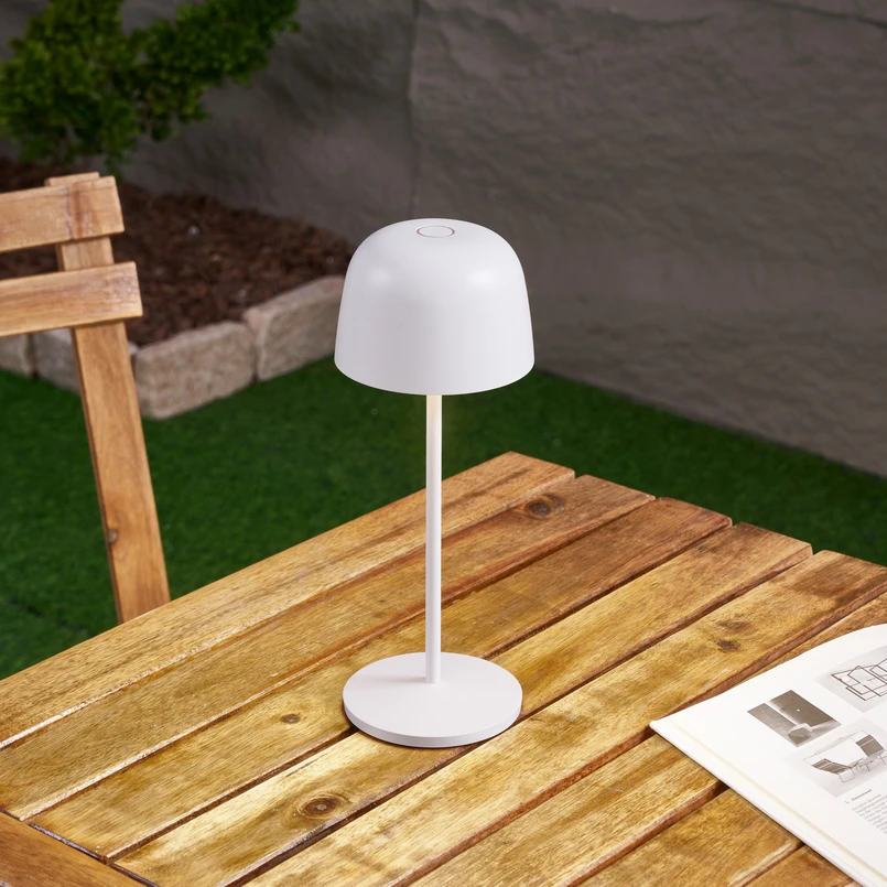 Weiße LED-Akku-Tischlampe Arietty: Eleganz und Flexibilität für Innen- und Außenbereiche