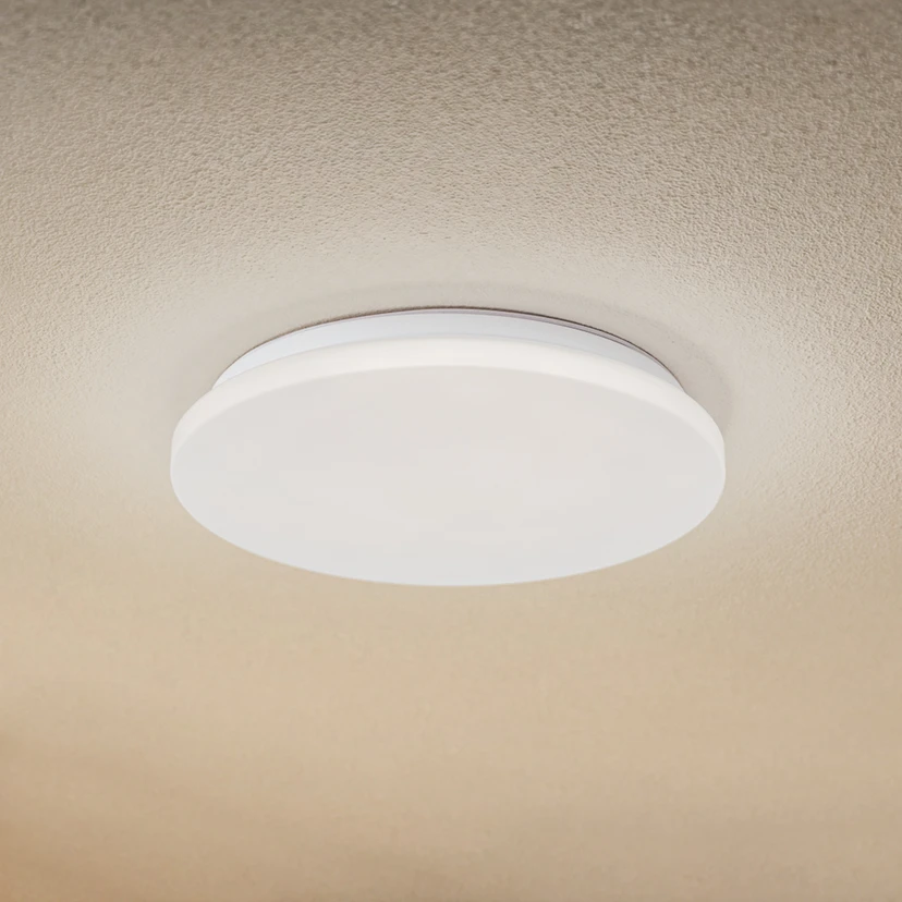 Die runde LED-Deckenleuchte Kirkola mit Kunststoff-Diffusor und Metallhalterung hat zwei besondere Features: Durch die Schutzart IP44 ist sie für den Außenbereich oder andere Feuchträume geeignet. Der integrierte Bewegungsmelder ist hilfreich für Durchgangsräume, Carports, Flure usw.