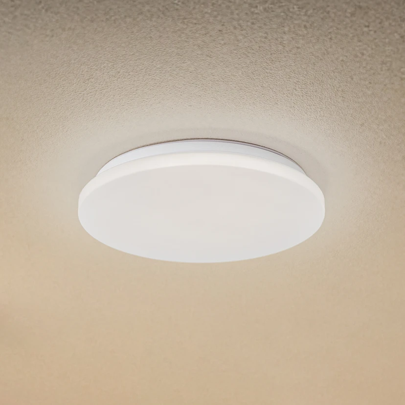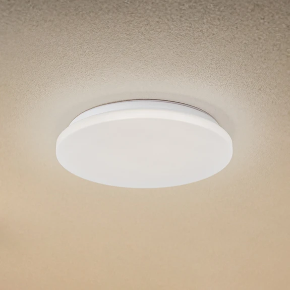 Die runde LED-Deckenleuchte Kirkola mit Kunststoff-Diffusor und Metallhalterung hat zwei besondere Features: Durch die Schutzart IP44 ist sie für den Außenbereich oder andere Feuchträume geeignet. Der integrierte Bewegungsmelder ist hilfreich für Durchgangsräume, Carports, Flure usw.