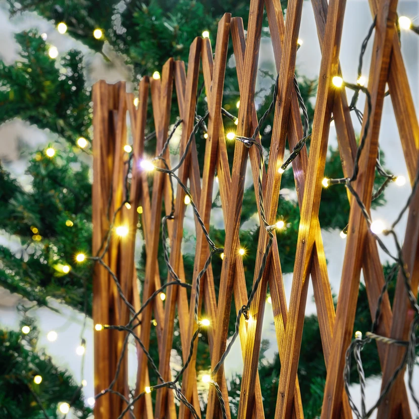 Diese LED-Lichterkette mit 200 Leuchtmitteln ist ein umweltfreundliches Accessoire für die Dekoration im Außenbereich. Die Lichterkette wird mit einer Fernbedienung gesteuert. Die LED-Technologie sorgt für eine hohe Energieeffizienz und eine lange Lebensdauer der Leuchten. Die Lichterkette eignet sich ideal für die Weihnachtsdekoration, Gartenpartys oder als besonderes Highlight in der Wohnungsdekoration. Die Lichterkette lässt sich einfach und schnell aufhängen und sorgt für eine zauberhafte Atmosphäre in jedem Raum oder Garten. Darüber hinaus kann sie in vier Stufen gedimmt werden (25 %, 50%, 75% und 100%).