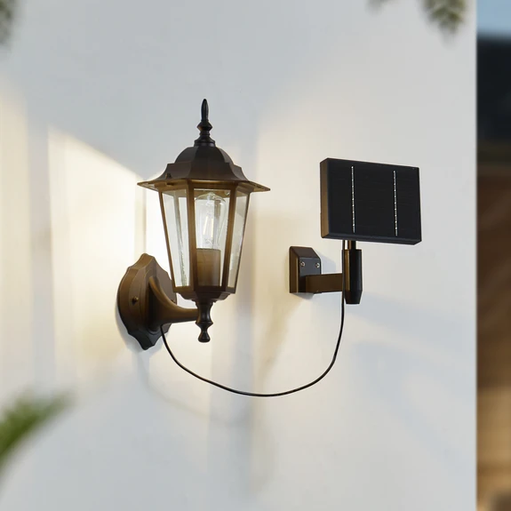 LED-Solarwandleuchte Sayata in Laternen-Optik