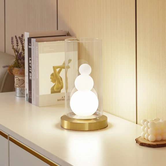 Die Tischleuchte Kupla vereint Eleganz und Funktionalität in einem Design, das sowohl für das Wohnzimmer als auch für das Esszimmer ideal ist. Das opale Glas mit klaren Akzenten sorgt für eine sanfte Lichtverteilung, die eine angenehme Atmosphäre schafft. Die einflammige Ausführung ermöglicht eine gezielte Beleuchtung, die Räume in einladende Rückzugsorte verwandelt. Die Verwendung einer G9-Fassung bietet Flexibilität bei der Wahl des Leuchtmittels. Ob für eine entspannte Lesezeit oder ein geselliges Beisammensein – die Tischleuchte Kupla ist eine Bereicherung für jeden Raum.