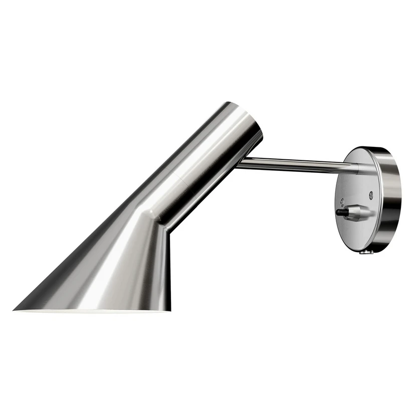 Die Wandleuchte AJ besticht nicht nur mit zeitloser Schönheit, sondern auch und gerade mit ihrer ausgeklügelten Funktionalität. Die 1957 von dem dänischen Architekten Arne Jacobsen im Rahmen der Gesamtgestaltung des SAS Royal Hotels (Radisson) in Kopenhagen entworfene Wandleuchte wirkt damals wie heute aktuell und gilt mittlerweile - wie weitere Einrichtungselemente des Hotels - als Designikone. AJ ist mit einem runden Wandhalter samt Ein-/Ausschalter und einem schlanken, vertikalen Arm ausgestattet. Letzterer trägt den Schirm, der im unteren Abschnitt als Kegel und im oberen Bereich zylindrisch gestaltet ist. Um das Licht auf den gewünschten Bereich lenken zu können, ist der Schirm ausrichtbar befestigt. So eignet sich die Wandleuchte hervorragend als Lichtquelle beispielsweise über dem Betthaupt im Schlafzimmer oder über der Couch in der Leseecke.