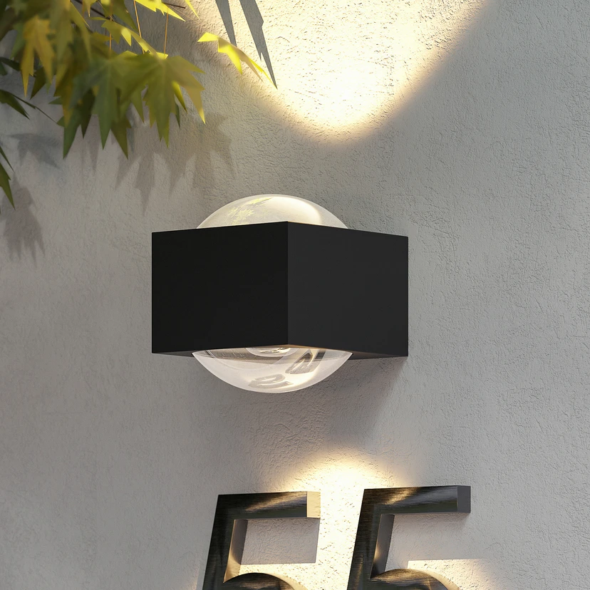 Die LED-Außenwandleuchte Almos punktet mit ihrem außergewöhnlichen Design, das sich definitiv sehen lässt. Die beiden Schirmabdeckungen bestehen aus Glas und sind halbkugelförmig, was das kantige Gehäuse der Leuchte etwas abrundet und diesem besonderen Look etwas mehr Leichtigkeit verleiht.