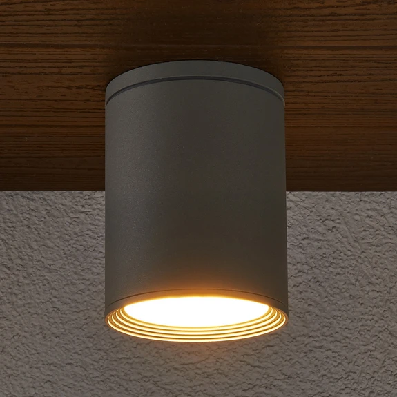 Grauer Außen-Deckenstrahler Minna in zylindrischer Form
