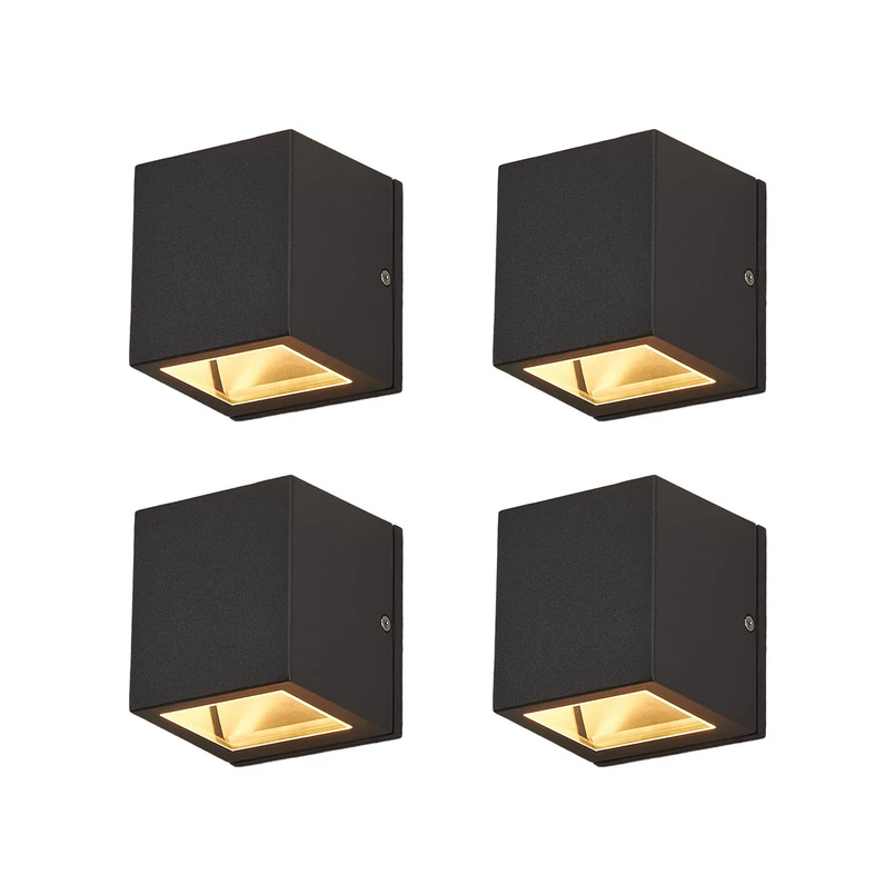 Würfelförmige Außenwandleuchte Maurice im 4er-Set