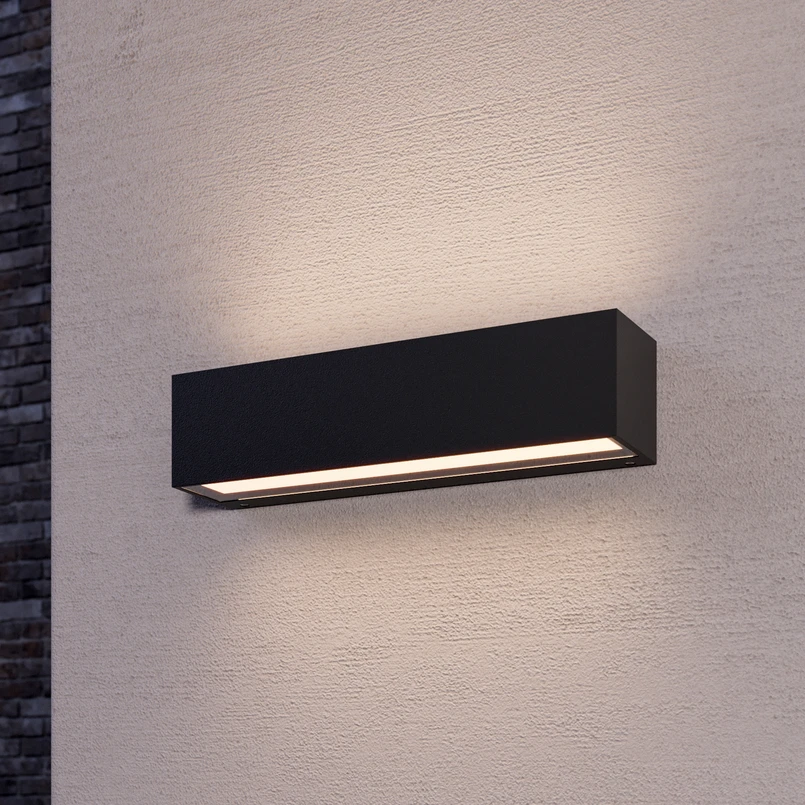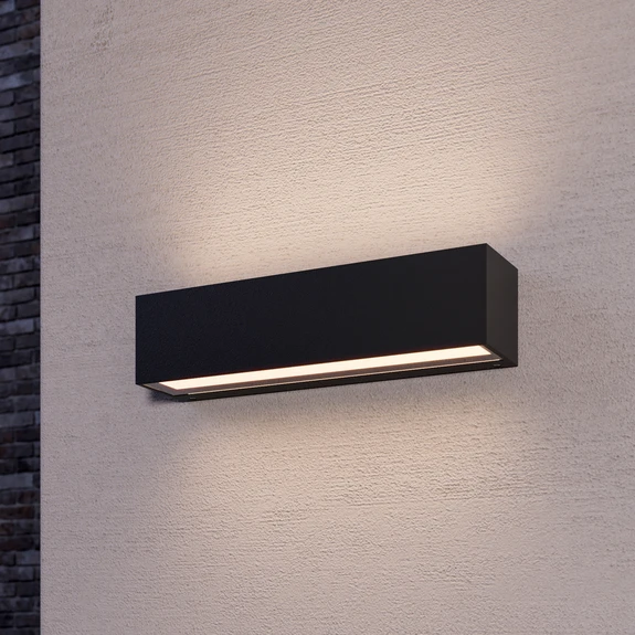 Lengo bietet als Außenwandlampe dank der LED energieeffizienten Lichtschein und passt insbesondere zu modernen Fassaden. Das Gesamtdesign ist geradlinig und modern, die grafitgraue Oberfläche passt zu vielen Umgebungen gut, weil sie angenehm dezent wirkt. Ihr Licht wird sowohl nach oben als auch nach unten abgestrahlt.