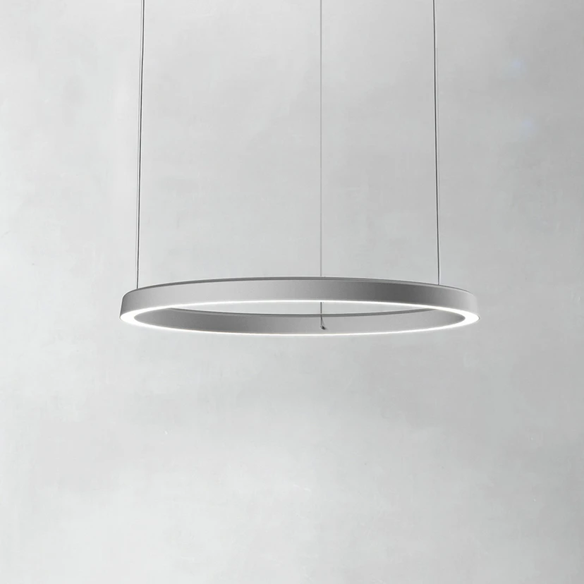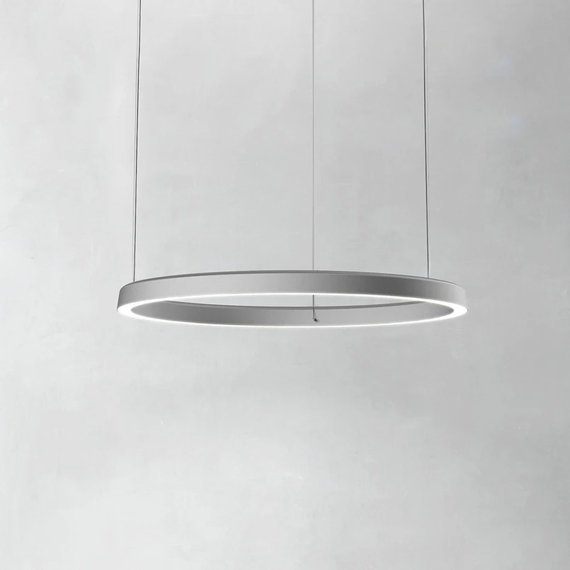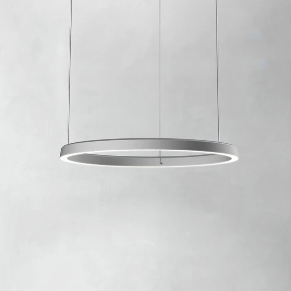 Die beeindruckende LED-Pendelleuchte Compendium Circle aus der Schmiede des traditionsreichen Leuchtenherstellers Luceplan besticht auf den ersten Blick durch ihre einfache Form. Ein Kreis, das Symbol der Harmonie schlechthin, dient als geometrische Grundform für das gelungene Design. Scheinbar in der Luft schwebend, bietet die Leuchte Compendium Circle eine moderne Beleuchtung, auch für große Räume. Eine Besonderheit dieser Leuchte ist, dass sie unterschiedlich montiert werden kann. Mit dem Licht nach unten strahlend, als Downlight. Dies ist zum Beispiel perfekt für einen Einsatz über einem Esstisch oder dem Couchtisch im Wohnzimmer. Zum anderen kann die Pendelleuchte Compendium Circle auch nach oben strahlend montiert werden, sodass hier ein zur Decke strahlendes und indirektes Raumlicht erzeugt wird.