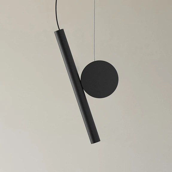 Die LED-Hängeleuchte Doi besteht im Wesentlichen aus zwei Teilen: dem Leuchtkörper in Form eines Zylinders und einem scheibenförmigen, magnetischen Gegengewicht. Beide werden von der Decke abgependelt und können dank des Magnetismus unterschiedlich in Position gebracht werden. Dadurch ergeben sich auch verschiedene Leuchtrichtungen des zylindrischen Leuchtkörpers.