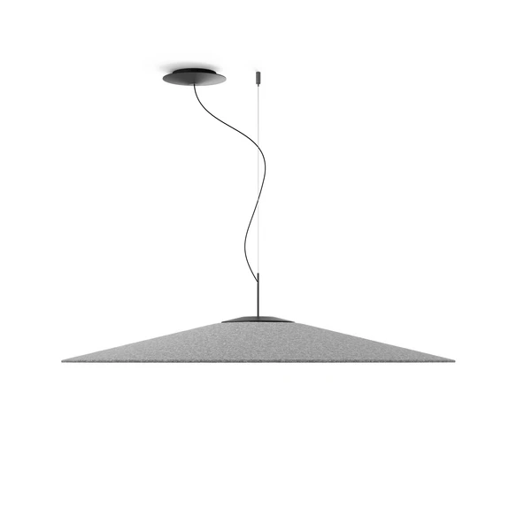 Besonderheit dieser Ausführung ist die schallabsorbierende Filzlage (zu 60 % recycelt), welche über den Aluminiumschirm gezogen ist. Hiermit trägt die LED-Pendelleuchte Koinè zu einer angenehmen Raumakustik bei.