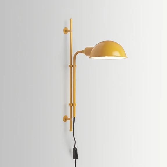 Design-Wandleuchte Funiculí - mondäner und einstellbarer Lichtspender mit Kabel und Stecker Diese optisch ungewöhnliche und sehr moderne Wandleuchte wurde von dem Designer Lluís Porqueras entworfen. Seine Mission beim Erfinden neuer Produkte liegt darin, sich auf das Wesentliche zu konzentrieren, sich von allem Überflüssigen zu entledigen und etwas visuell Ansprechendes, Nützliches und Schlichtes zu kreieren. Funiculí stammt aus dem Jahr 1979 und wurde 2013 von Marset überarbeitet. Funiculí verkörpert all die Ansprüche des Designers und kann sowohl für direkte als auch für indirekte Beleuchtung eingesetzt werden, denn der halbrunde, blickdichte Schirm aus Aluminium lässt sich individuell einstellen. Der Lichtkegel lässt sich bis zu 360 Grad drehen, wodurch der Lichtstrahl genau dort hin gelenkt werden kann, wo man ihn benötigt. Daher eignet sich die Wandleuchte auch ideal als Lichtspender neben dem Bett. Zusätzlich besteht die Möglichkeit, den Schirm in seiner Höhe auszurichten, was durch Klammern am Gestänge realisiert wird. Dank ihrer vielfältigen Funktionen, auch in Bezug auf die Anschlussmöglichkeiten, schafft es diese Wandlampe bereits seit vielen Jahren stets im Trend zu sein. - eine runde Wandbefestigung ist im Lieferumfang enthalten - Schalter am Zuleitungskabel