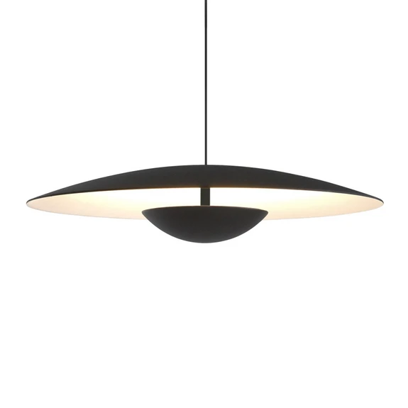 Runde LED-Hängeleuchte Ginger aus Aluminium Die von Joan Gaspar entworfene Hängeleuchte Ginger stammt aus der gleichnamigen Kollektion, die ursprünglich aus Holz gefertigt wurde und nun durch Metall-Ausführungen ergänzt wird. Diese Variante bietet das gleiche warme Licht und setzt Räume dadurch ebenso stimmungsvoll in Szene, ohne zu blenden. Dabei ist sie aber absolut schnörkellos, beinahe plastisch und ermöglicht den vielfältigen Einsatz bei verschiedensten Anforderungen. Ihr halbrunder Schirm ist nach unten geöffnet und hat einen deutlich kleineren, halbrunden Wärmeableiter gegenüberliegend, der das Licht wieder nach oben reflektiert und dadurch eine indirekte Beleuchtung erzeugt. Die gemütliche Stimmung, die beim Einschalten einsetzt, kann durch die Dimmung des Lichts noch unterstrichen werden. Ginger erzeugt sowohl alleine als auch mit mehreren Leuchten einen ästhetischen Reiz, der den Ansprüchen des Herstellers Marset gerecht wird. Dieser möchten nämlich mit seinen Produkten die Werte gutes Design, hohe Qualität, technologische Strenge, Innovation, Nachhaltigkeit, Langlebigkeit und Authentizität vermitteln, wodurch er sich hohe, aber erreichbare Ziele gesteckt hat.