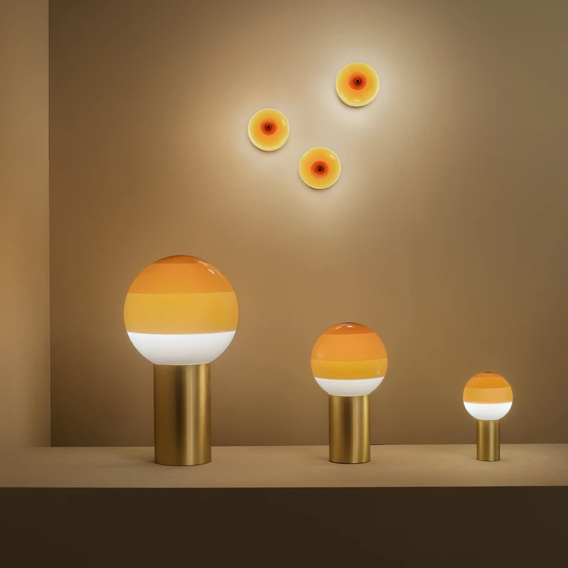 Die LED-Tischleuchte Dipping Light M erfreut einerseits mit einem auch ausgeschaltet sehr dekorativen Anblick, andererseits mit einer sehr ästhetischen Lichtwirkung. Das kugelförmige, geblasene Leuchtenglas sitzt auf einem lackierten Metallfuß und weist effektvolle Nuancierungen in der Farbgestaltung auf, die durch den schichtweisen Lackauftrag entstanden sind.