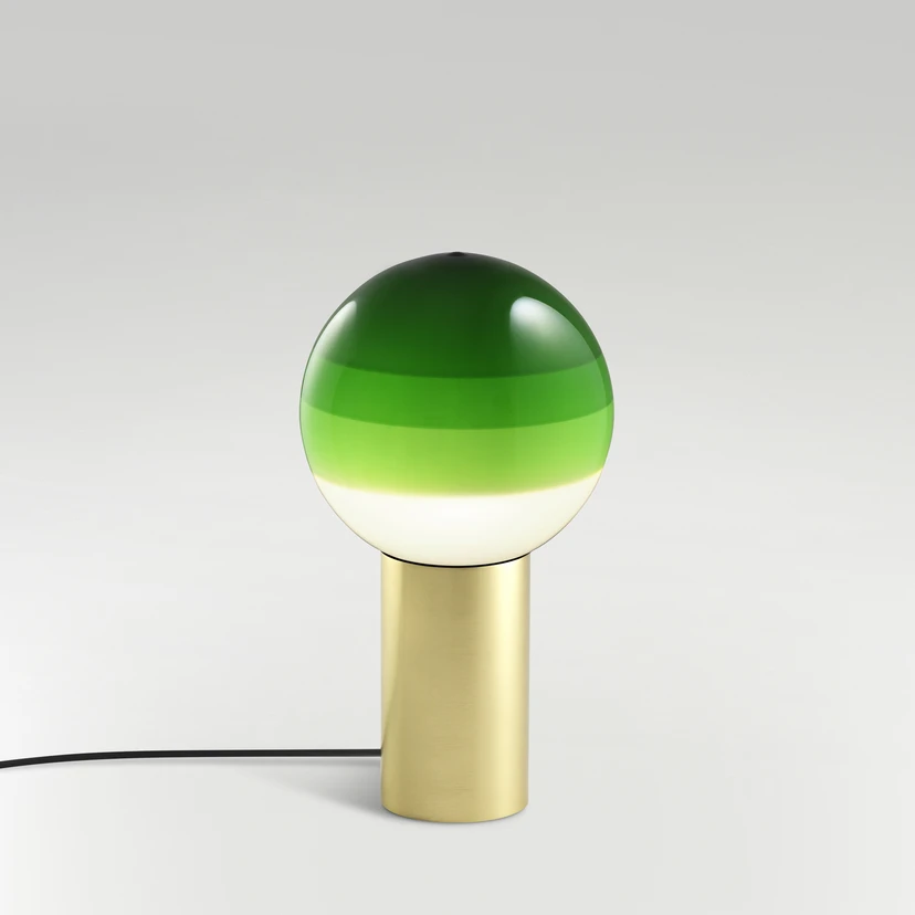 Bei der LED-Tischlampe Dipping Light S machen die Farbabstufungen einen Großteil des optischen Reizes aus, weshalb dieser dekorative Lichtspender auch ausgeschaltet eine gute Figur macht. Der Leuchtkörper besteht aus glänzend weiß geblasenem Glas und wurde im oberen Teil lackiert. Das Kugelglas thront auf einem ebenfalls lackierten Metallgestell in Zylinderform.