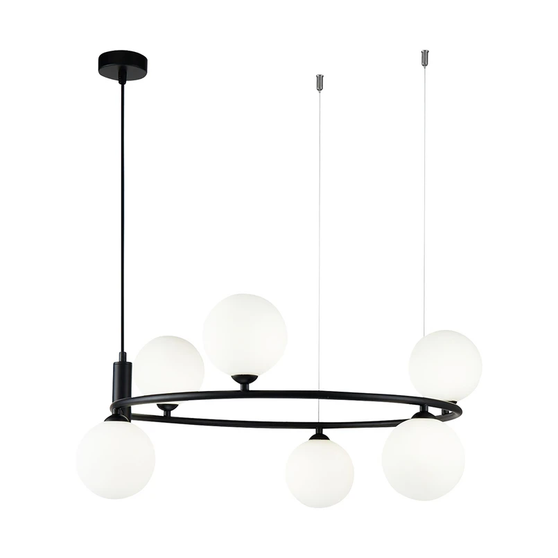 Erleben Sie mit der Maytoni Ring Hängeleuchte eine neue Dimension der Raumbeleuchtung. Das moderne Design mit sechs weißen Glasschirmen verleiht jedem Wohnzimmer, jeder Küche und jedem Esszimmer eine elegante Note. Die fein abgestimmte Lichtverteilung schafft eine Atmosphäre, die sowohl zum Entspannen als auch zum kreativen Arbeiten einlädt. Obwohl ein Dimmer nicht im Lieferumfang enthalten ist, lässt sich die Leuchte problemlos über einen externen Dimmer anpassen, um die gewünschte Helligkeit und Stimmung zu erzeugen. Mit der Maytoni Ring Hängeleuchte wird Licht zum faszinierenden Gestaltungselement Ihres Zuhauses.