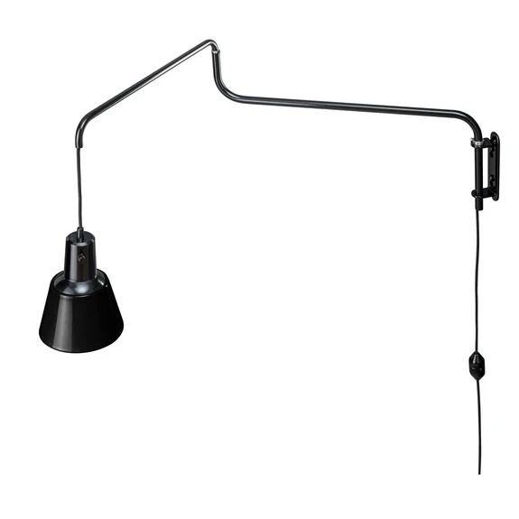 Als Basis dienen schwarz lackierte Stahlrohre, die von einer ebenfalls aus Stahl bestehenden und in Schwarz gehaltenen Wandhalterung getragen werden. Dabei lassen sich beide Arme flexibel schwenken, um eine optimale Ausrichtung des Lichtes zu gewährleisten. Zusätzlich lässt sich die Abhängung des Schirms variieren, so dass dieser um bis zu 109 cm abgehängt werden kann. Hierfür ist unterhalb der Wandhalterung ein Gegengewicht am Textilkabel befestigt. Letzteres ist mit einem Stecker ausgestattet, so dass diese Leuchte einfach über eine Steckdose mit Strom versorgt werden kann.