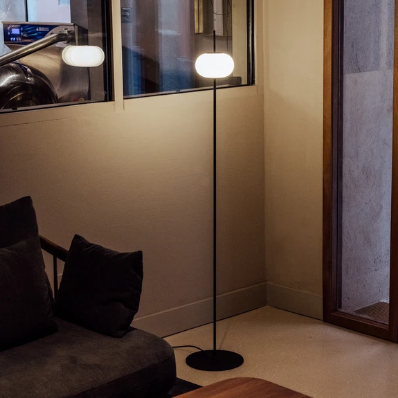 Die Stehleuchte Astros besticht mit ihrem minimalistisch-orientierten Look. Das schlanke Gestell aus Zamak Spritzguss (vergleichbar mit Aluminium) wurde mit einer schwarzen Lackierung versehen. Darauf ist ein ovaler Lampenschirm aus mundgeblasenem, opalem Glas platziert. Form und Beschaffenheit des Schirms haben den Vorteil, dass das Licht gleichmäßig in alle Richtungen abgegeben wird, ohne dass man geblendet wird. Leuchten wie Astros sind vor allem für den Einsatz als Akzentbeleuchtung im Wohnzimmer beliebt. Optisch passt die Lichtquelle zu modern gestalteten Räumen. Astros ist mit einem Fußtrittschalter ausgestattet.