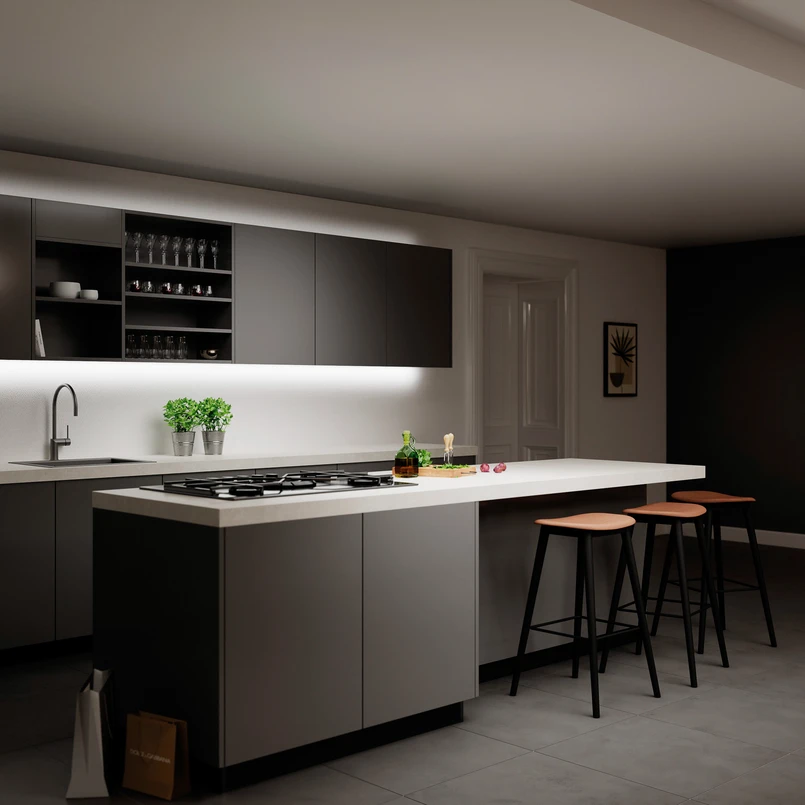 - stimmungsvolle Unterstützung der Grundbeleuchtung durch Akzente in Weißtönen