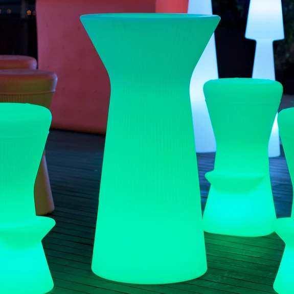 Ein praktischer Stehtisch und eine leuchtende Dekoration gleichzeitig ist der Stehtisch Capri des spanischen Leuchtenherstellers Newgarden. Der aus Polyethylen gefertigte Tisch ist mit RGB-LEDs und mit weißen LEDs bestückt, die sich über die mitgelieferte Infrarot-Fernbedienung einstellen und auch dimmen lassen. Der Stehtisch Capri ist ein Highlight jeder privaten Gartenparty, aber auch im gewerblichen Bereich, in Gastronomie oder Hotellerie