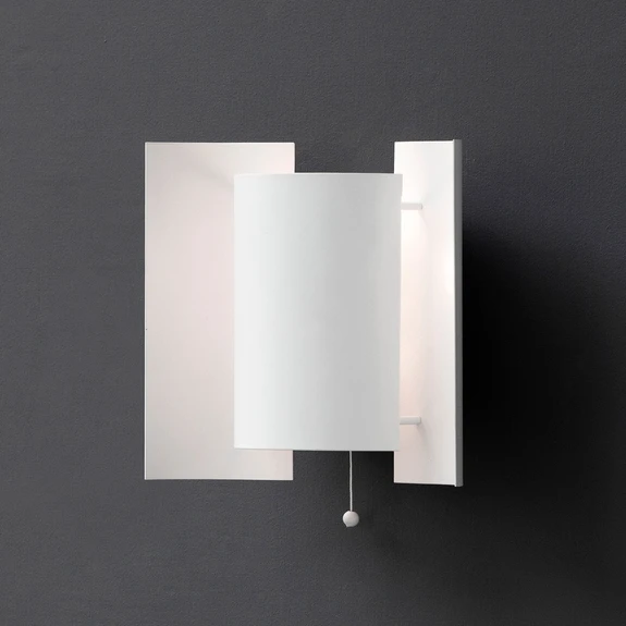 Sie erinnert mit ihrer Form an einen abstrakten Schmetterling, was der Wandleuchte Butterfly zu ihrem Namen verhalf. Das Design besteht aus einem in den Raum hinein gewölbten Mittelteil, hinter dem die Lichtquelle eingesetzt wird, und zwei zur Wand hin gewölbten Außenteilen, die hier plastisch die Flügel nachahmen und für eine wunderbare indirekte Streuung des Lichts sorgen. Diese schlichte Methode erschafft eine einzigartige Atmosphäre, die ausreichend hell, aber dennoch angenehm zugleich ist. Dank des kleinen Zugschalters kann die Wandleuchte bequem ein- und ausgeschaltet werden. Bei Bedarf kann dieser auch entfernt werden.
