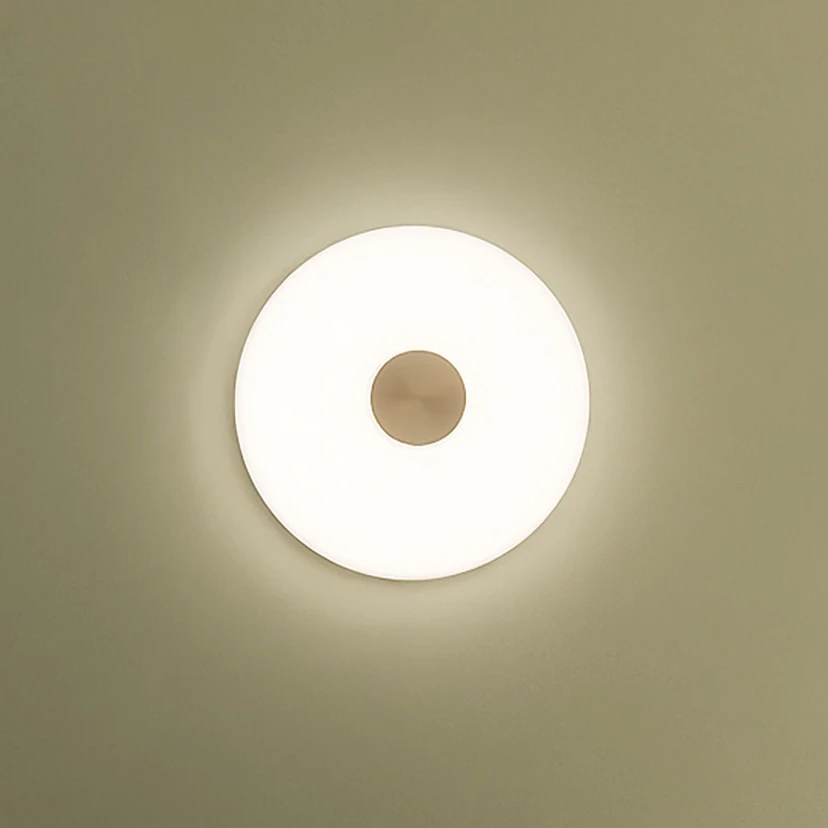 Die LED-Wandleuchte Glint ist mit einem abnehmbaren Kabel mit Stecker und Schalter ausgestattet und vereint stilvolles Design mit angenehmer und energiesparender Beleuchtung. Gefertigt aus hochwertigem Glas und Metall, präsentiert sich die Leuchte mit einem eleganten opalweißen, flach und rund mundgeblasenen Schirm und einem Messingelement in der Mitte. Die integrierte LED-Lichtquelle sorgt für ein warmweißes Licht, das eine angenehme Atmosphäre im Raum schafft. Mit einer Farbwiedergabe von 85 Ra werden Farben natürlich und lebendig dargestellt.