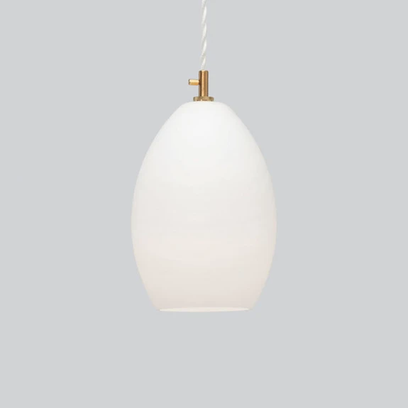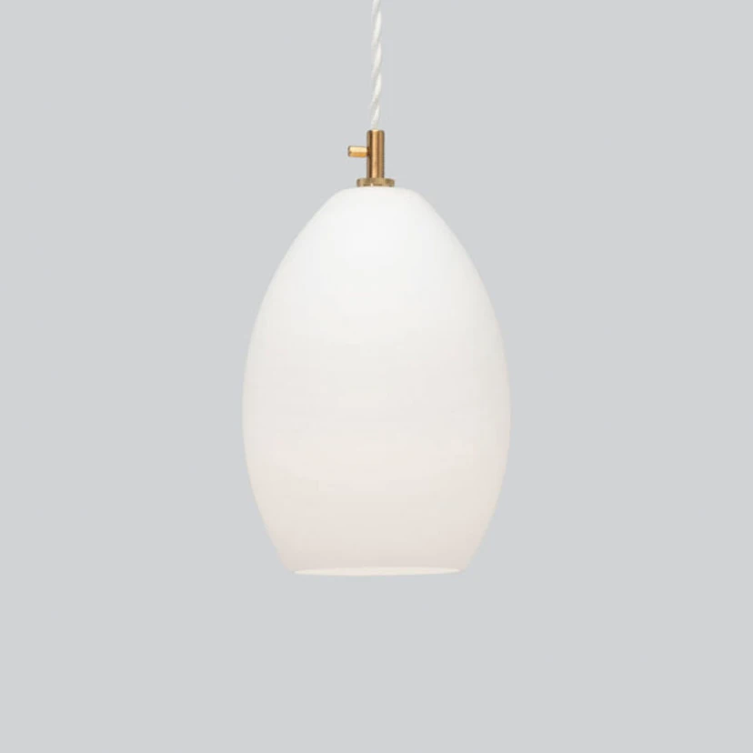 Das industrielle Detail der modernen Glas-Pendelleuchte findet sich dezent und zurückhaltend im Messingdetail. Dieses sitzt in der Verbindung von Lampenschirm und Abhängung und zeichnet sich durch eine kleine Schraube aus. Der Schirm selbst ist hier aus mundgeblasenem, reinweißem Glas. Durch das ebenfalls weiße Textilkabel der Abhängung schafft das Messingdetail in der Mitte einen gewollten, aber sehr angenehmen Kontrast. Das Design dieser stilvollen Leuchte stammt aus der Feder des Designer-Duos Anne Louise Due de Fønss & Anders Lundqvist. Diese entwarfen die Leuchtenserie Unika ursprünglich für das Kopenhagener Restaurant Grønbech and Churchill. Hier zeigt sich auch die ideale Verwendung: Über Tischen oder Theken installiert bietet Unika durch den nach unten offenen Glasschirm ein helles und trotzdem sehr angenehmes Licht.