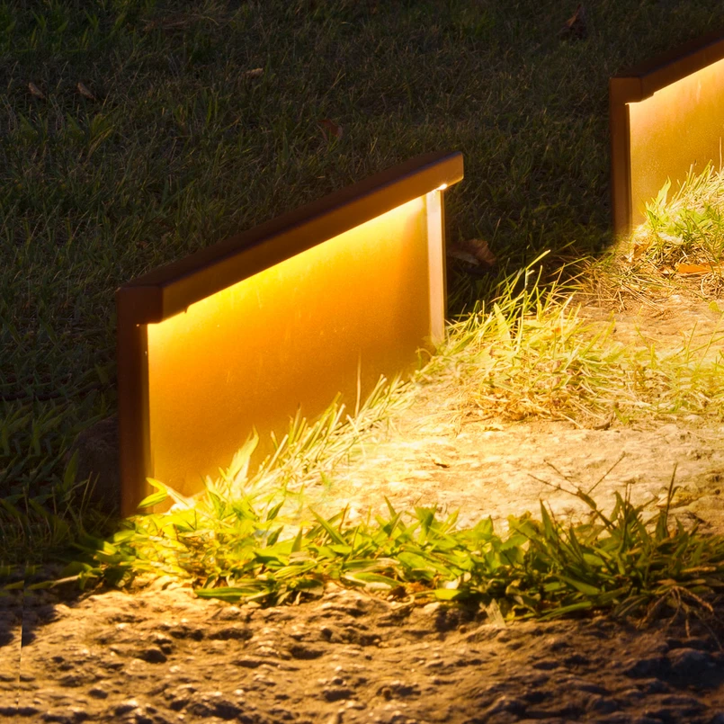 Unten strahlende LED-Sockelleuchte Step Line in Rostoptik