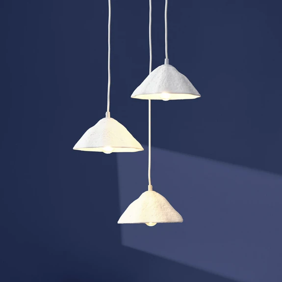 Lotus Leaf ist eine dekorative dreiflammige Hängeleuchte mit rundem Baldachin, deren Schirme aus Pappmaché gefertigt wurden und mit je einer E14-Fassung ausgestattet sind. Die ganz in Weiß gehaltene und im Lotusblatt-Design gestaltete Leuchte passt in jedes Interieur und macht sich besonders gut über einem Tisch in Wohn- oder Esszimmer. Die Schirme wurden aus recycelten Materialien gefertigt, die Leuchtmittel sind frei wählbar und austauschbar, was die Hängeleuchte zu einer nachhaltigen Beleuchtungslösung macht. Kombiniert mit weiteren Leuchten der Serie Decor Lotus Leaf lässt sich ein kompletter Raum stilvoll beleuchten.