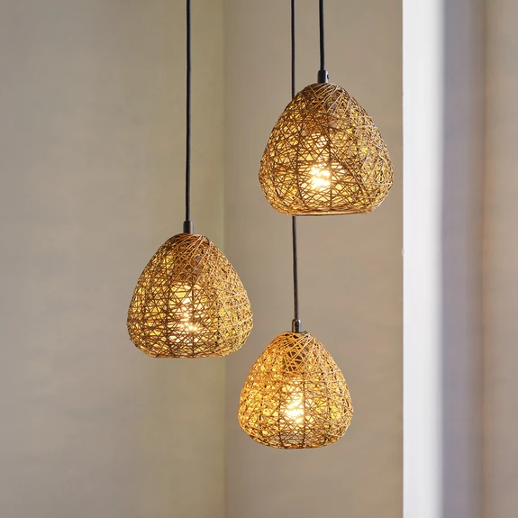 Die Hängeleuchte Decor Paper Drop vereint natürlichen Charme mit interessanter Lichtwirkung. Ihre drei tropfenförmigen Schirme bestehen aus vielen feinen Papierstreifen, die um ein Konstrukt aus Stahl gewickelt wurden. Sie hängen von einem runden Baldachin ab - perfekt für einen Esstisch oder die Sitzgruppe im Wohnzimmer. Die Leuchte in einem dunklen Beigeton passt in jedes Interieur und schafft mit dem abstrahlenden Licht eine behagliche Atmosphäre im Raum.