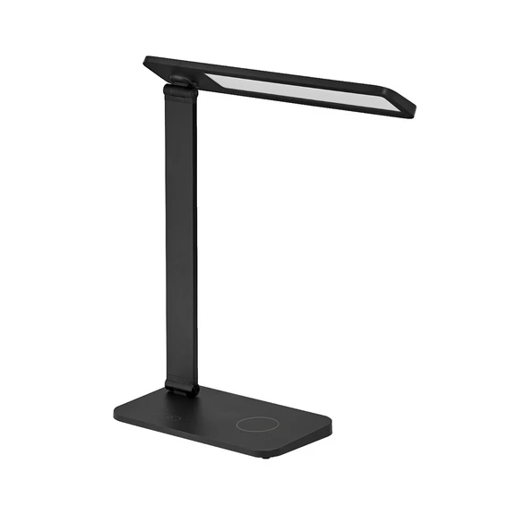 Die LED-Schreibtischleuchte Office Line Desk Banker bietet dank induktiver Ladefläche und 3-stufiger Dimm- und Farbtemperaturanpassungsfunktion perfekte Lichtverhältnisse am Arbeitsplatz. Die Lichtfarbe kann über den berührungsempfindlichen Sensor am Leuchtenfuß in drei Lichtfarben (warmweiß, universalweiß oder tageslicht) eingestellt werden und die Beleuchtung lässt sich dimmen. Auf dem Leuchtenfuss befindet sich eine Fläche für inductives Laden. Der schwenkbare Leuchtenkopf ermöglicht die gezielte Ausrichtung der Lichtquelle. Die Leuchte wurde aus Aluminium gefertigt und ist mit einem 180 cm langen Anschlusskabel mit Stecker ausgestattet.