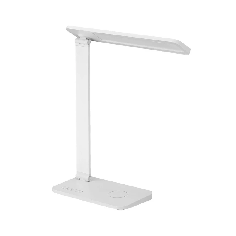 Die LED-Schreibtischleuchte Office Line Desk Banker bietet dank induktiver Ladefläche und 3-stufiger Dimm- und Farbtemperaturanpassungsfunktion perfekte Lichtverhältnisse am Arbeitsplatz. Die Lichtfarbe kann über den berührungsempfindlichen Sensor am Leuchtenfuß in drei Lichtfarben (warmweiß, universalweiß oder tageslicht) eingestellt werden und die Beleuchtung lässt sich dimmen. Auf dem Leuchtenfuss befindet sich eine Fläche für inductives Laden. Der schwenkbare Leuchtenkopf ermöglicht die gezielte Ausrichtung der Lichtquelle. Die Leuchte wurde aus Aluminium gefertigt und ist mit einem 180 cm langen Anschlusskabel mit Stecker ausgestattet.