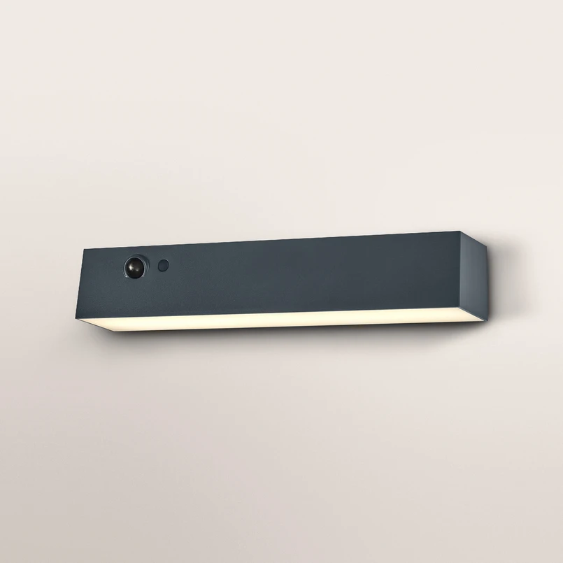 Dank des integrierten Sensors wird die Beleuchtung automatisch gesteuert, was den Komfort und die Effizienz erhöht. Die Dimmbarkeit über den enthaltenen Dimmer ermöglicht eine flexible Anpassung der Lichtintensität, um den individuellen Bedürfnissen gerecht zu werden. Die dunkelgraue Farbgebung und die moderne Stilrichtung machen die Lampe zu einem stilvollen und funktionalen Element für jede Außenwand.