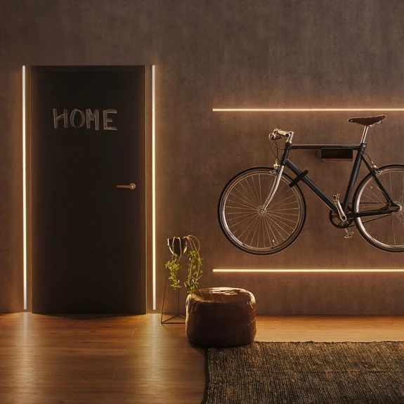 Mit diesem schmalen Aufbauprofil in mattem Schwarz lassen sich dekorative Lichtakzente an Möbeln oder Wänden setzten. Das aus Aluminium gefertigte Profil ist für den Einsatz eines MaxLED 1000 LED-Strips konzipiert (nicht enthalten) und sorgt mit seinem schwarz satinierten Diffusor für einen besonderen Wow-Effekt beim Einschalten des LED-Strips.