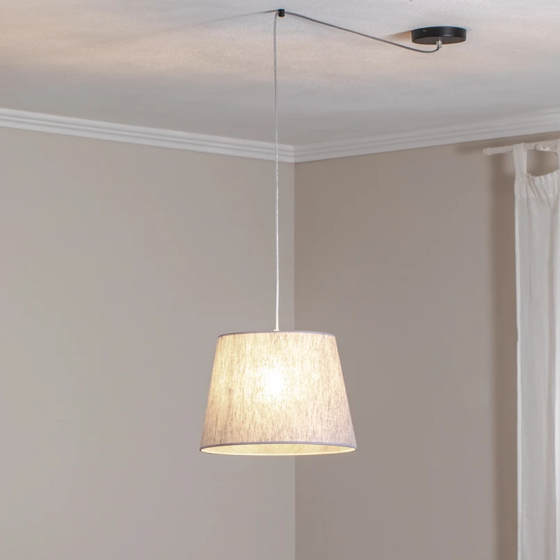 Einflammige Pendelleuchte Ascot mit grauem Textilschirm - Abhängung dezentral