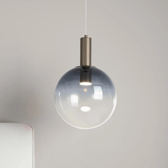 Die Pendellampe Ombre vereint hochwertige Materialien wie Glas und Flussstahl mit einem harmonischen Farbverlauf in Rauchgrau und Weiß. Ihr kugelförmiges Design sorgt für eine gleichmäßige Lichtverteilung und schafft eine stimmungsvolle Atmosphäre in jedem Raum. Die Kombination aus edlen Materialien und sanften Farbtönen macht sie zu einem stilvollen Blickfang, der sich nahtlos in verschiedene Wohnbereiche wie Wohnzimmer, Esszimmer, Küche oder Flur integrieren lässt.
