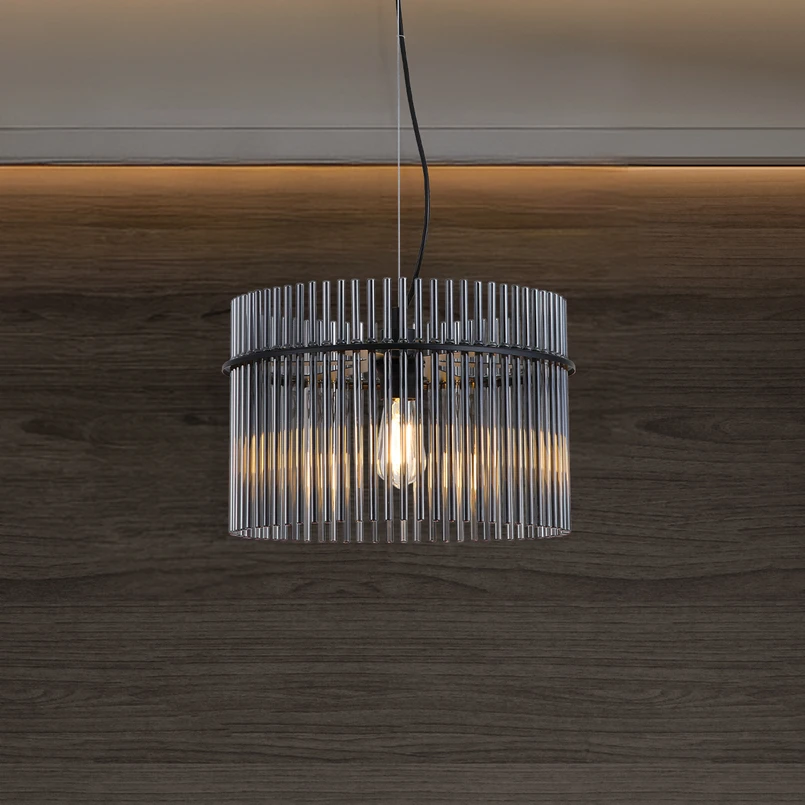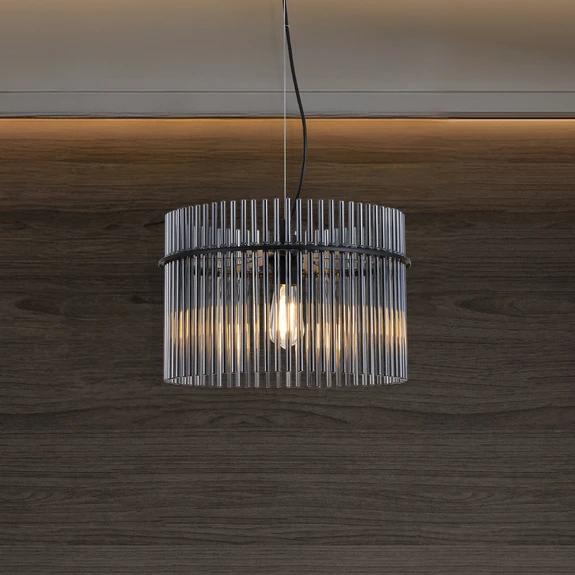 Pendellampe Swizzle mit Schirm aus Glasstäben in transparentem Rauchgrau