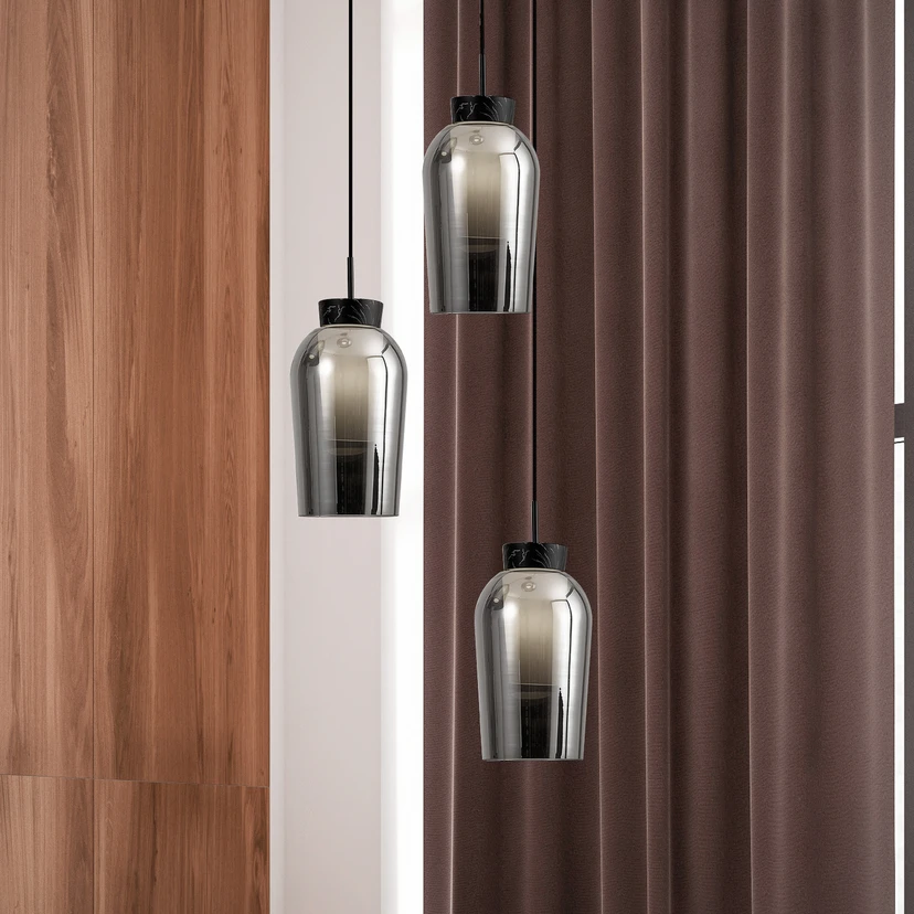 Pendelleuchte Nora, schwarz, chrom, 3-flammig, rund, Glas