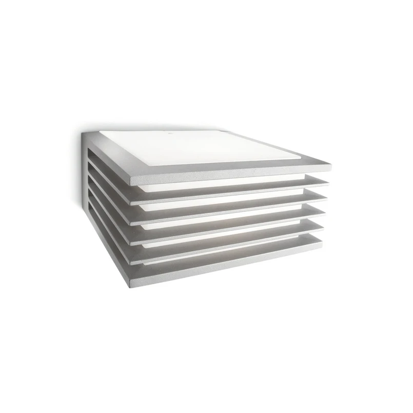 Die graue, mit entblendenden und schützenden Lamellen gestaltete Außenwandleuchte Shades ist eine dekorative Außenleuchte für Eingänge, Terrassen und viele weitere Bereiche. Sie strahlt durch den satinierten Diffusor und die lichtlenkenden Lamellen blendfreies Licht ab und kann mit einer beliebigen Lampe in schlanker Form mit E27-Sockel bestückt werden.