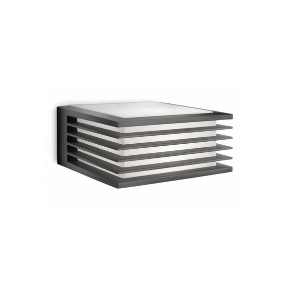 Diese aus Aluminium-Spritzguss und einem Diffusor aus Kunststoff bestehende Außenwandleuchte in eckiger Form kann auch mit energieeffizienten und langlebigen LED-Leuchtmitteln bestückt werden, denn sie ist mit einer E27-Fassung ausgestattet. Durch den opalweißen Diffusor strahlt das Licht nach oben und unten, während das seitlich und nach vorn abstrahlende Licht durch die Lamellen entblendet wird.
