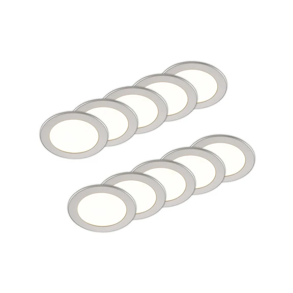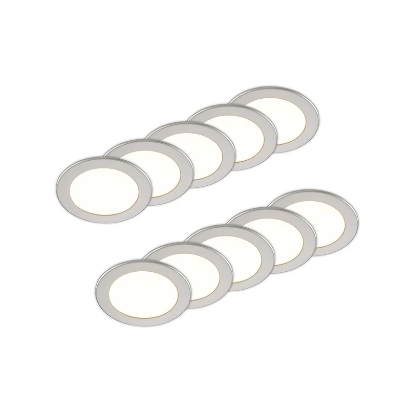 Silberne LED-Einbaulampe Cadance in runder Form, IP44, Einstellung der Lichtfarbe vor Montage, dimmbar - in praktischem 10er-Set